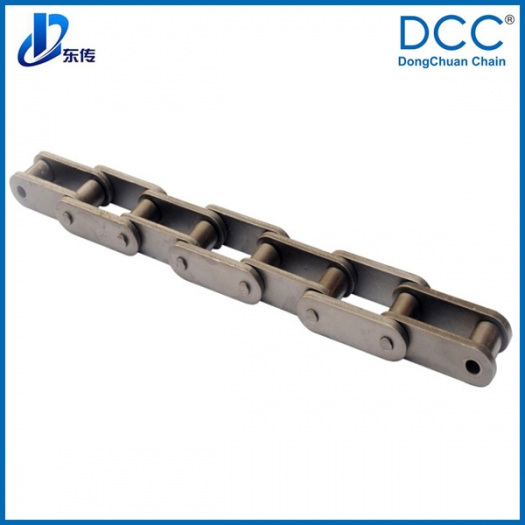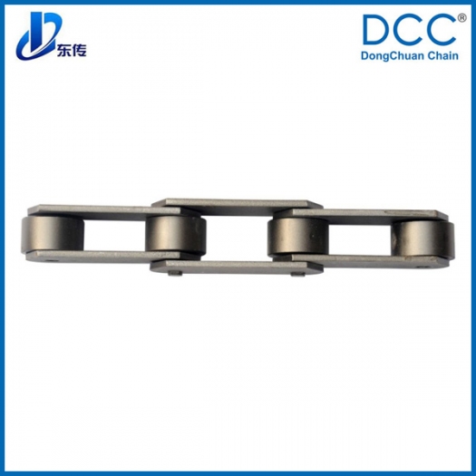 鏈條主要用于工程機械,鋪路機使用,鏈條為雙排鏈,在兩鏈條間裝配刮板,我們在裝配刮板的部位采用焊接工藝,并在鏈板中間沖定位孔,焊接附件用油壓機壓入鏈板后再進行焊接,增強附件的焊接牢固度,中間的刮板用中碳鋼熱處理,使刮板強度更高,更耐磨。并用平面磨床磨平刮板的兩平面,減少鏈條與設(shè)備間的間隙,通過以上這些工藝措施,鏈條的使用壽命得以大大的提高。